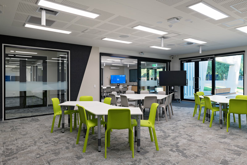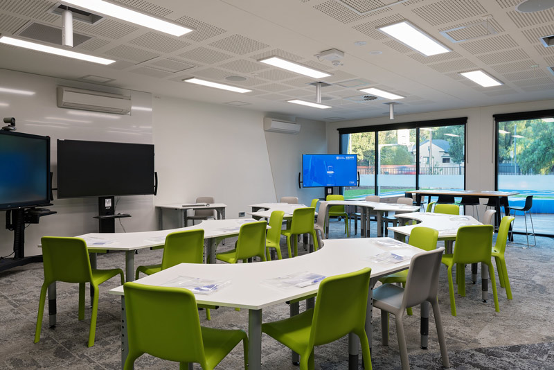 To build on and extend the ways in which students learn and communicate, the Samsung SMARTSchool explores educational opportunities that embrace the challenges technology brings into the classroom. The facility features an array of Samsung technology including large form screens, video walls, outdoor PCs, smart phones, watches and tablets, virtual reality headsets and a digitally connected environment like no other in South Australia. It is designed to be a flexible education space, which can be configured in a number of ways for specific teaching and learning experiences – it’s a way for people to work together in new ways.