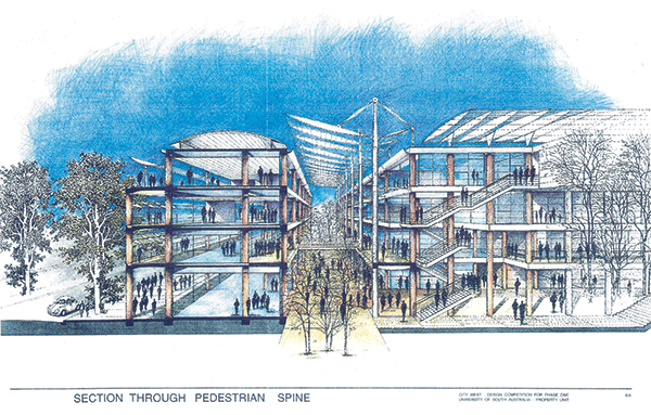 “It became the driving force in the establishment of the east-west pedestrian connectors in the planning of the Stage One campus, running parallel to North Terrace. It was a blessing in disguise at the time but an impediment perhaps to the connectivity across North Terrace for a campus that is seeking to reach far and wide beyond 2017.