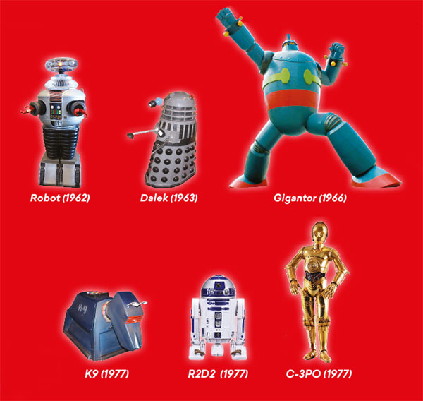 “We have sidekicks like K9 in Dr Who, C-3P0 and R2D2 in the Star Wars films and a few other animated characters such as Gigantor in Japan – but generally we are up against Daleks, Blade Runner’s replicants, HAL 9000 or the chillingly lifelike Synths with ambiguous motivations, from Humans,” he says.