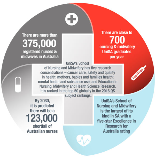 UniSA’s School of Nursing and Midwifery – ranked by the QS in the top 50 nursing schools globally – is contributing close to 700 graduates each year to the profession. However, it still remains that Australia’s demand for nurses is projected to significantly exceed supply in the future.