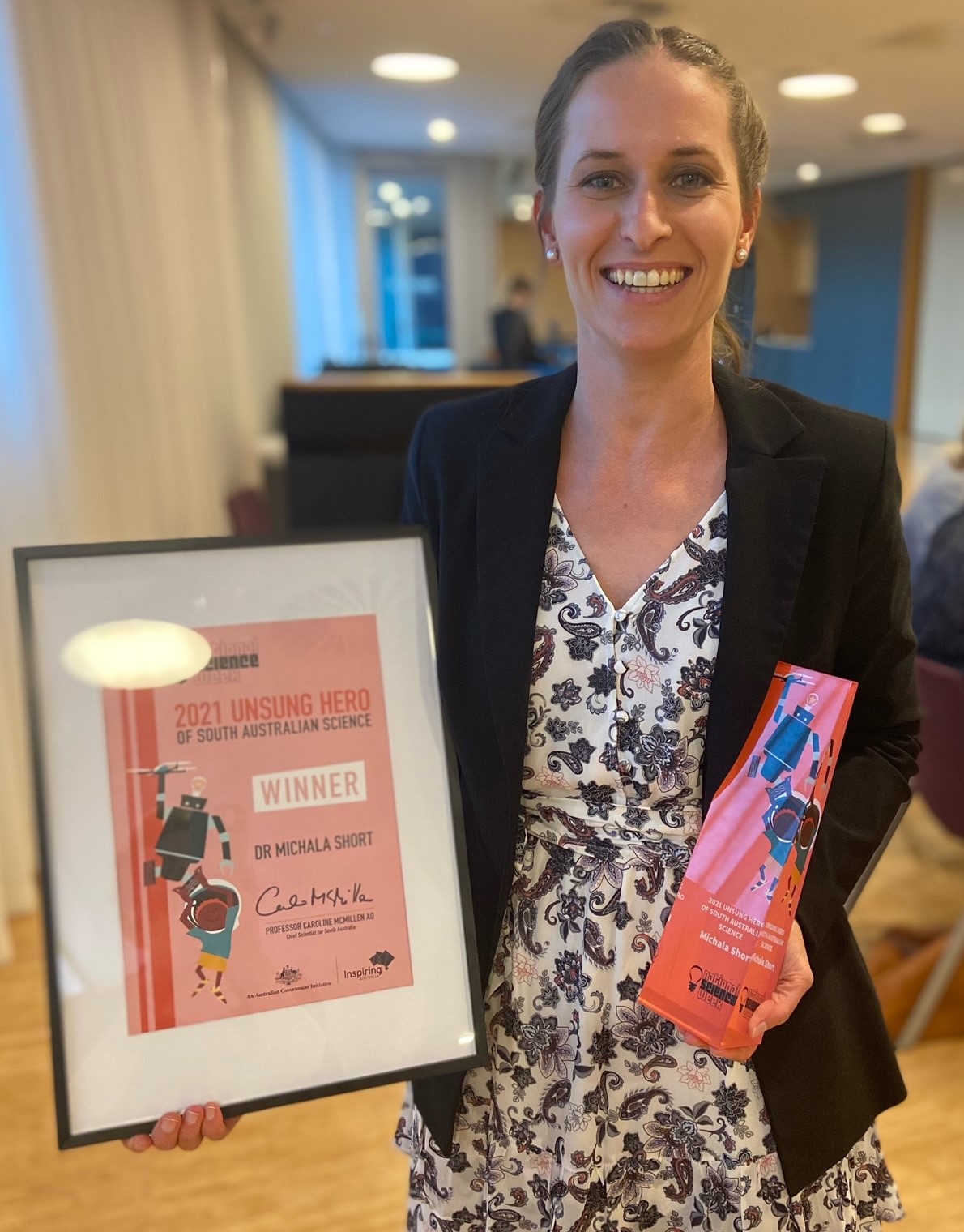 The UniSA lecturer and researcher was awarded the honour last night by the Chief Scientist of South Australia, Professor Caroline McMillen, at a special ceremony at Pridham Hall.