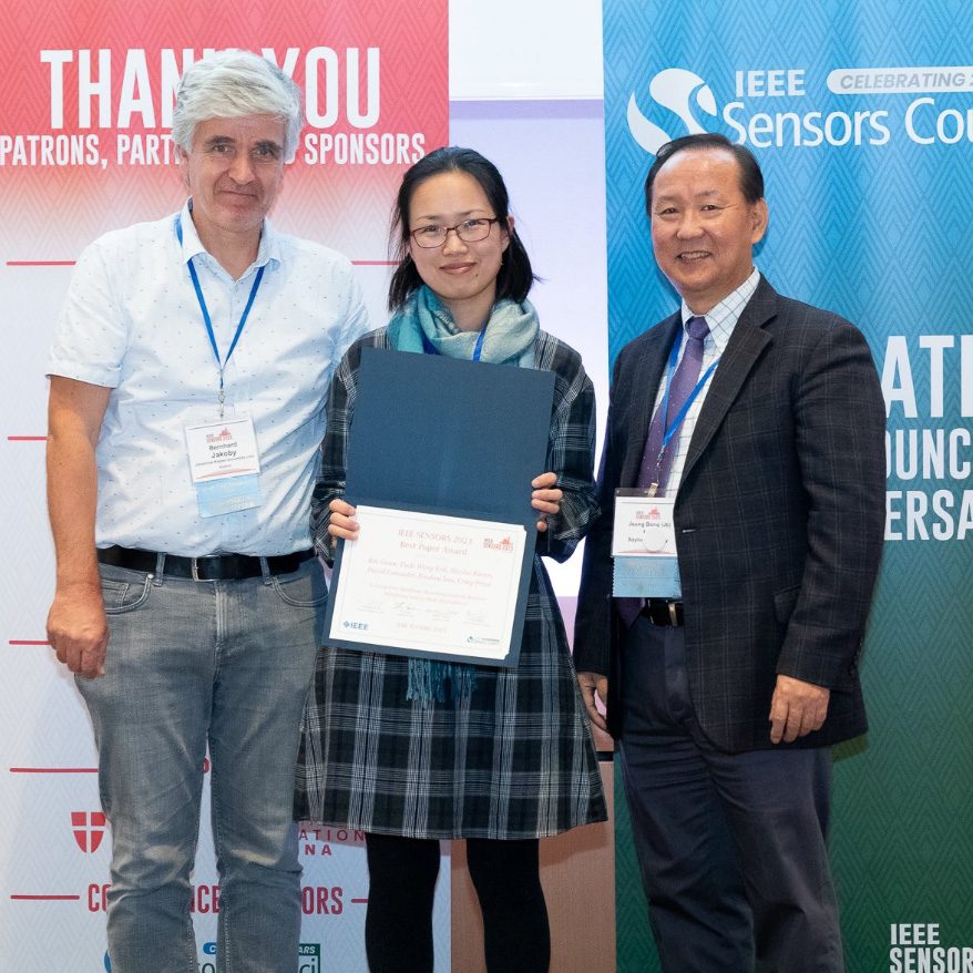 Awarded Third Place for the IEEE Sensors 2023 Best Paper Award, “A Pump-Free Optofluidic Biosensing Platform Based on Whispering Gallery Mode Microsheres”.